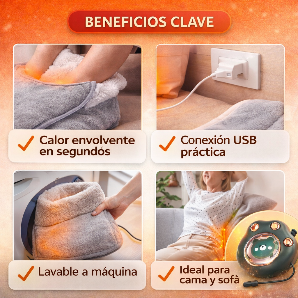 Diseñada para quienes están cansados de vivir con los pies helados incluso dentro de casa, de meterse en la cama y tardar horas en entrar en calor, de sentirse tensos e incómodos mientras trabajan o intentan relajarse. Esta almohadilla térmica proporciona un calor constante y envolvente que ayuda a recuperar la sensación de confort, reducir esa tensión provocada por el frío y permitir que tu cuerpo finalmente se relaje como debería, sin depender de mantas, bolsas de agua que se enfrían o soluciones temporales.